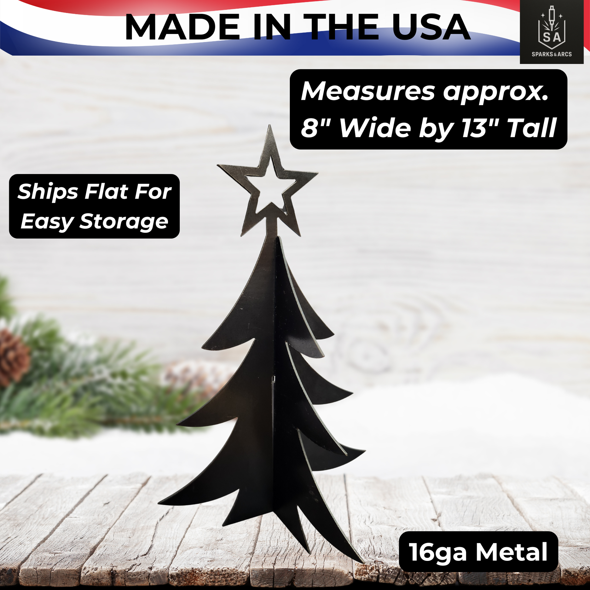 🎄 3D Metal Christmas Tree with Star — Made in Texas, USA