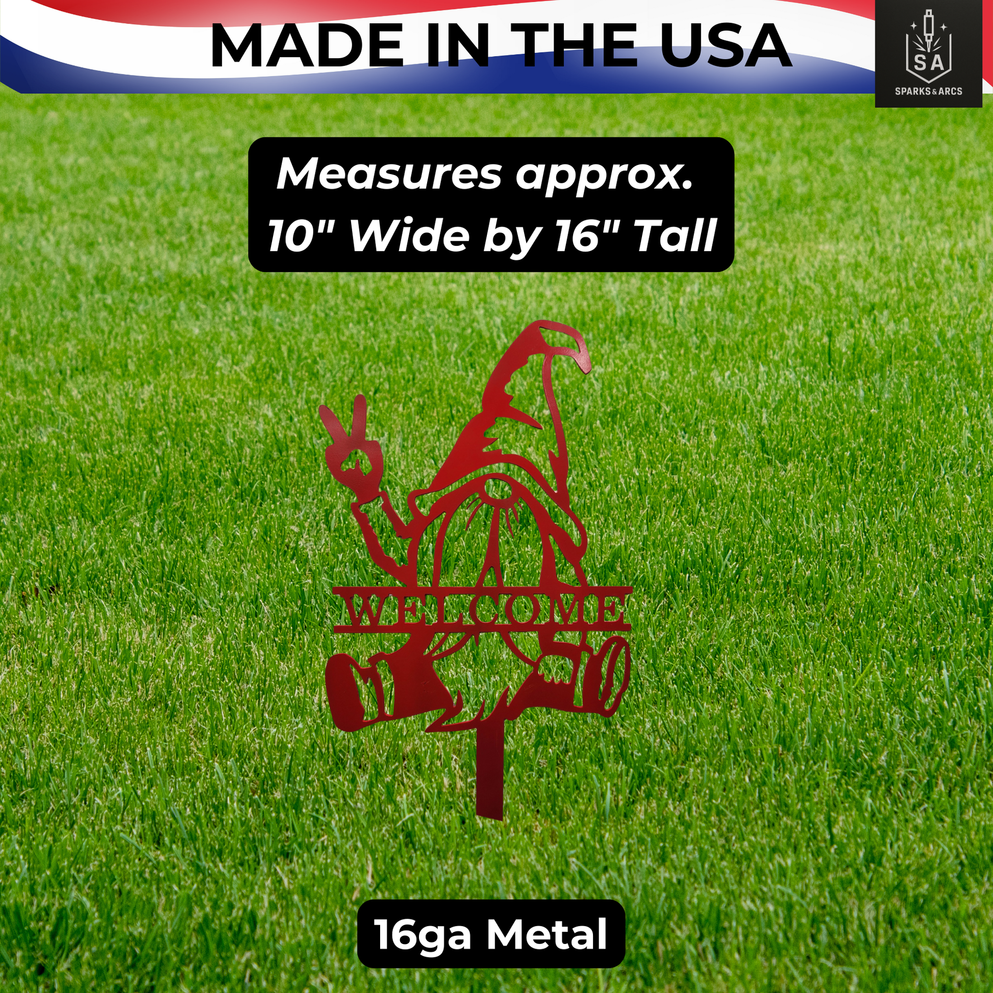 Peace Sign Gnome Metal Garden Stake | "Welcome" Metal Yard Art | Handcrafted 16" Steel Décor | Made in Texas